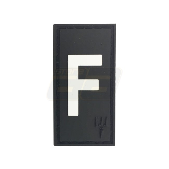 Pitchfork Letter F Patch - Black. Velcro backed. Dimensions: 50 x 25mm.