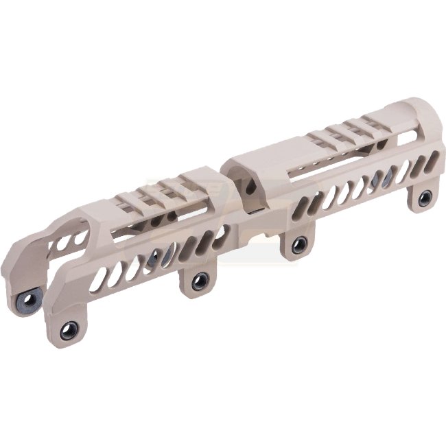 Enhance your AK's style with the 5KU B-31L Sport AK Gas Tube Cover in Tan color. This Zenitco-Style handguard extender is 200mm long, made of aluminum, and weighs 108g. Compatible with AK models from LCT & GHK, it requires a 5KU B-10 (L,U,M) or B-20U lowe