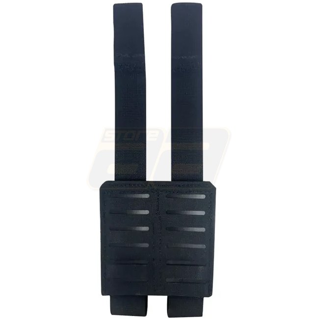 MOLLE backed double fast-draw elastic pistol magazine pouch with a patented funneled magwell design.