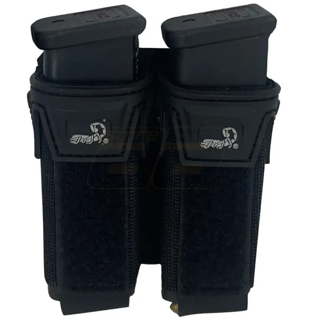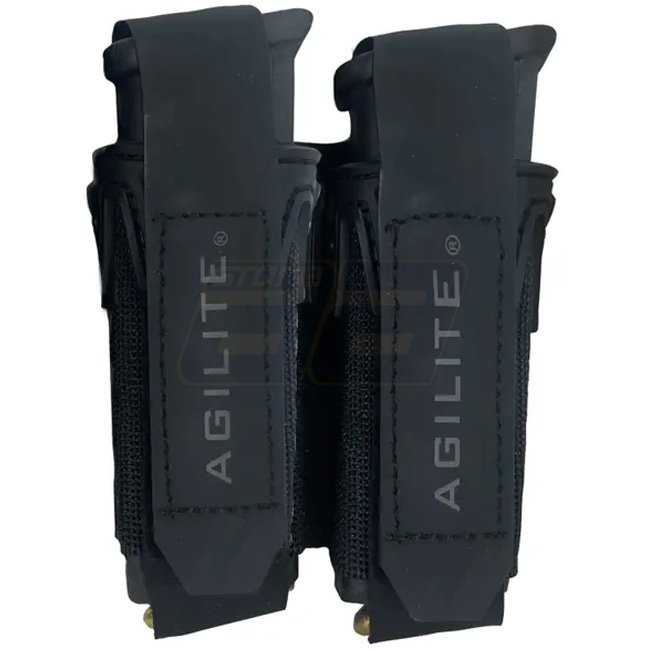 Securely carry two pistol magazines with the Agilite Pincer Pistol Double Pouch in Black! Designed for quick-draw functionality, this MOLLE-backed pouch features a unique funnel magwell design for easy access. Perfect for two double-stacked pistol mags. W