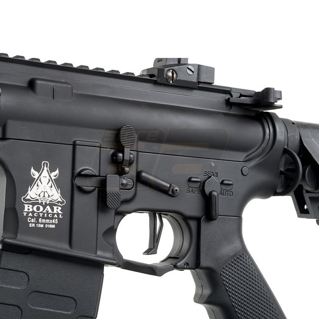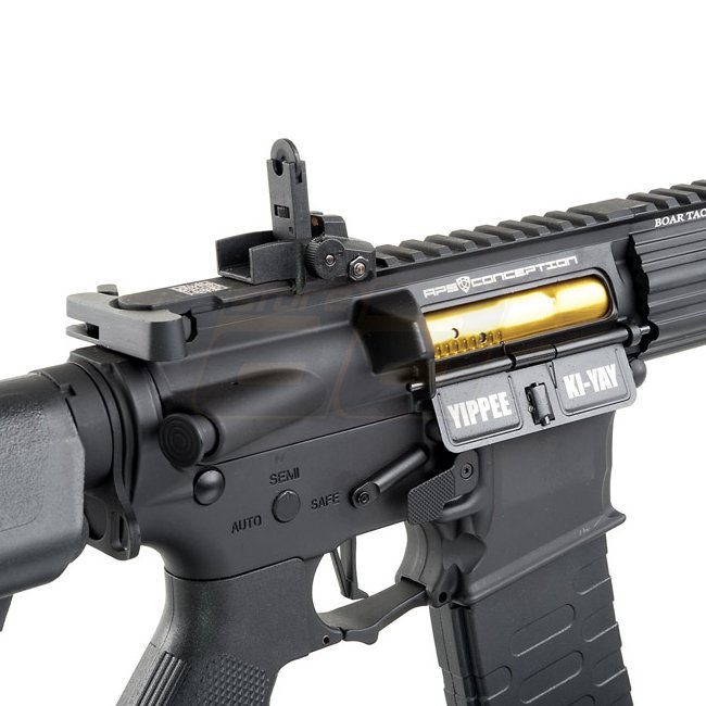 APS ASR117 BOAR Defense Ambi Rifle Tactical AEG - Version 2, Blowback gearbox, Long Type motor, aluminum body construction with polymer stock & grip. 5300 (6mm) magazine capacity, 814-896mm length, 2860g weight, 420mm inner barrel, 14mm- CCW muzzle thread