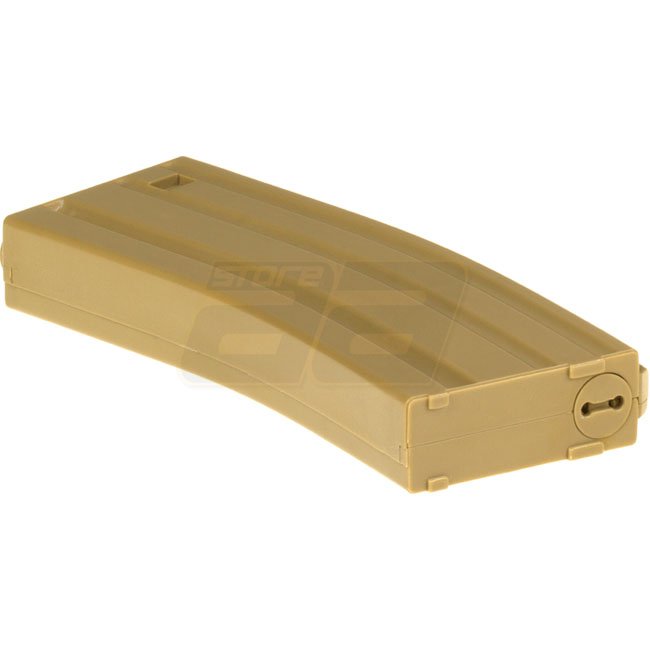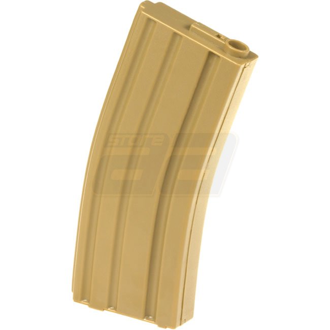 Ares M4 140rds Magazine - Tan: High-quality tan magazine designed for Ares M4 rifles, with a capacity of 140 rounds for extended firing sessions.