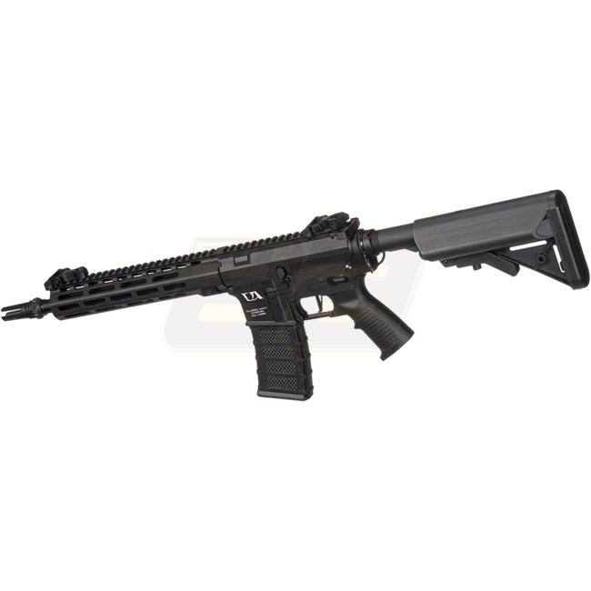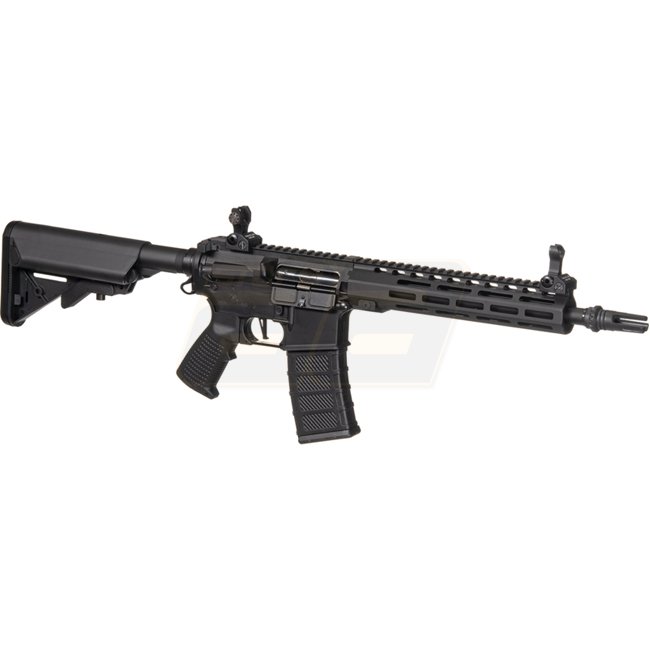 High-quality Classic Army CA4 M10 M-LOK ETU AEG in sleek black color. Features Version 2 gearbox, MOSFET, long motor, and durable metal construction with polymer stock and grip. Comes with 300-round magazine, adjustable hop-up, and shooting range of 45-48