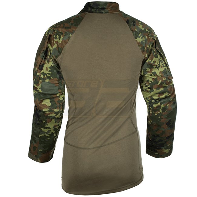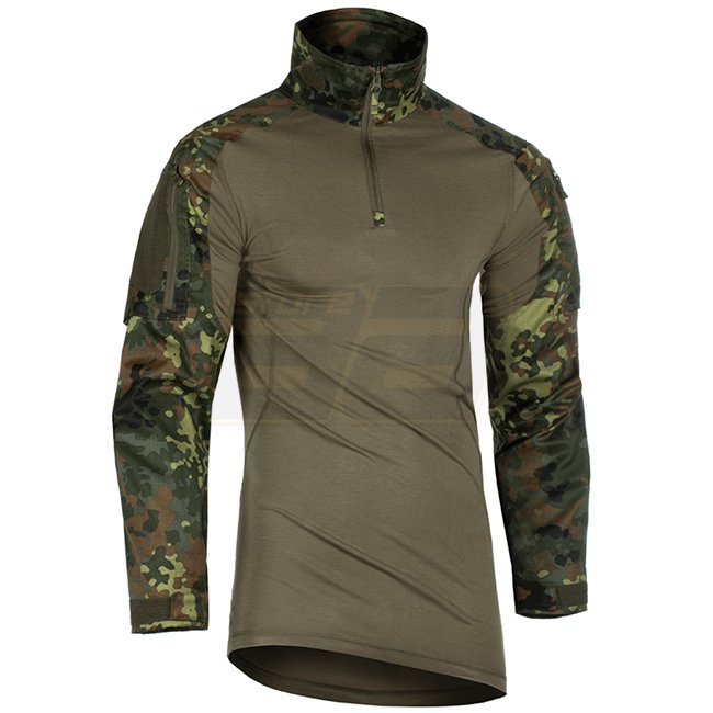 The shirt is an uncompromisingly designed combat-specific garment specially to be worn under body armor. Its anatomic fit provides great wearing comfort and avoids pressure points. The sleeves and sleeve pockets have been completely new designed and feature articulated ergonomic design for even better comfort and mobility. Reinforced elbow areas can be equipped with removable elbow pads (available optionally). Zip collar is designed to be worn in different varieties for your comfort and to prevent intrusion of dust. Shoulder area is seamless to avoid pressure marks when wearing a backpack, plate carrier or chest rig.