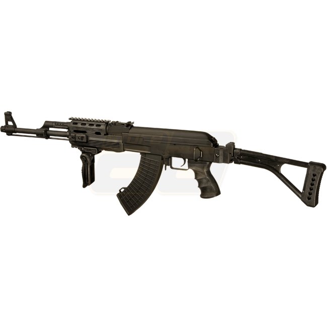 Cyma AK47 Tactical CM028U AEG - Lightweight plastic material, 400-round mag capacity, 365-385 FPS muzzle velocity, semi & full auto shooting modes, adjustable hop-up, and 455mm inner barrel length. Great for all types of airsoft battles!