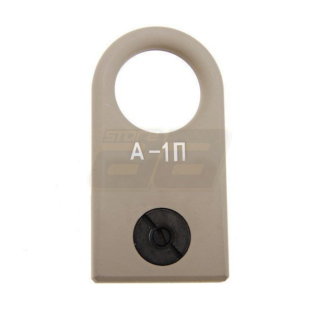 A-1L Sling Mount in Tan-Farbe, aus Aluminium. 45 mm Länge, 20 g Gewicht. Verfügt über ein Zenitco-Stil Klemme-Montagesystem. Nicht kompatibel mit Picatinny oder M-lok.