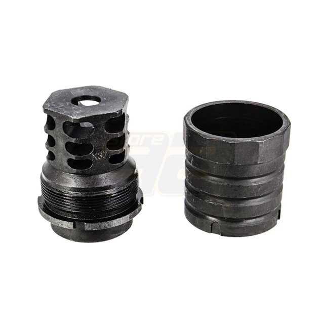Die 5KU Muzzle Brake ist eine robuste Mündungsbremse aus Stahl, die für die meisten Airsoft Gewehre der AK-Serie mit einem 14mm- CCW Gewinde geeignet ist. Diese Mündungsbremse ist sehr schwer und erhöht das Gewicht der Front erheblich.