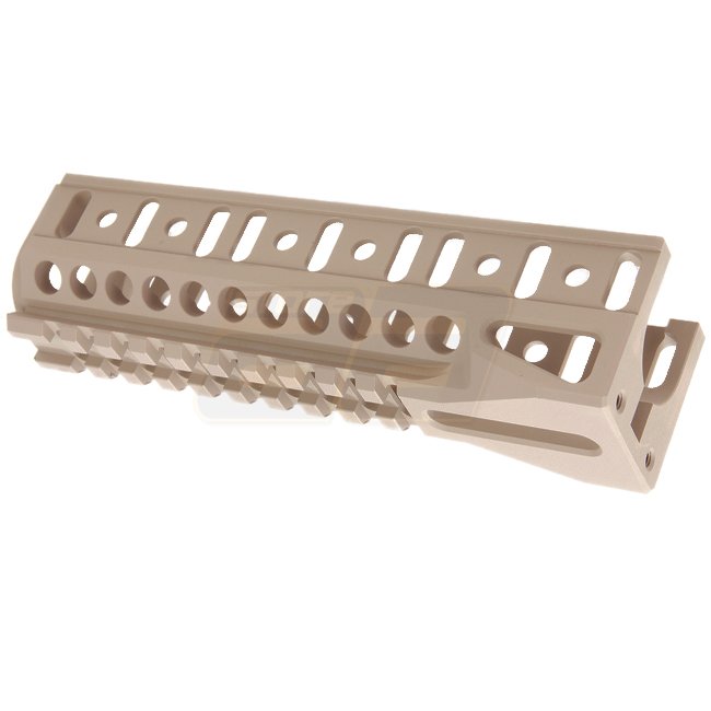 Verbessern Sie Ihr AK-Modell mit dem 5KU B-10U Classic Handguard in Tan. Hergestellt aus Aluminium, wiegt dieser 125 mm lange Handguard 112 g und verfügt über ein Picatinny / Zenitco-Stil Klemmmontagesystem. Kompatibel mit AK-Modellen von LCT & GHK, außer