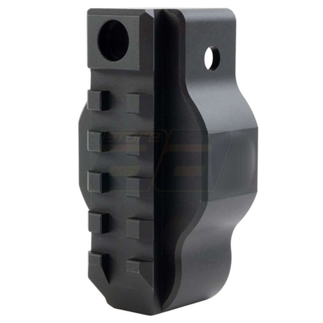 Gefertigt aus CNC-gefrästem Aluminium und schwarz eloxiert, bietet der Adapter eine robuste, langlebige Lösung mit präziser Passform. Die 1913er Picatinny-Schiene am Ende des Adapters erlaubt die Montage unterschiedlichster Zubehörschäfte nach Wunsch des Anwenders.
