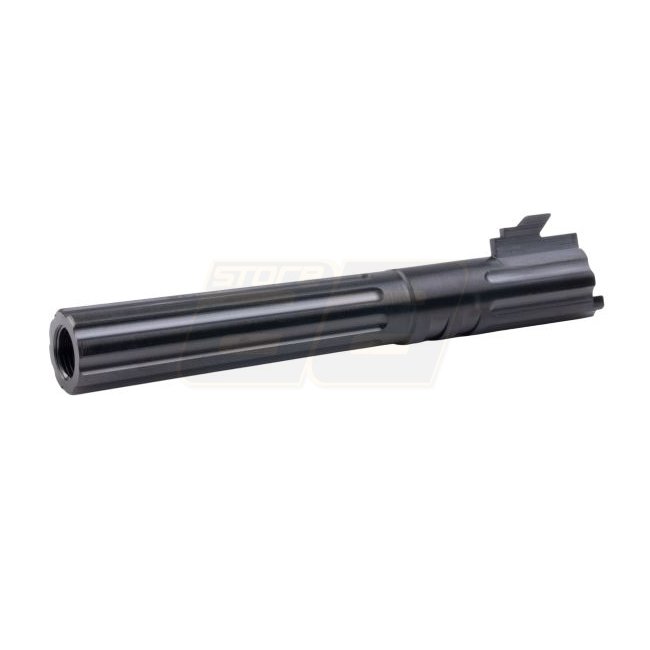 CNC-bearbeiteter Edelstahllauf, der für Tokyo Marui Hi Capa 5.1 GBB Airsoft-Pistolen konzipiert ist. Verfügt über ein gefluted Design, ein 11mm CW Innengewinde und eine einfache Einbauinstallation.