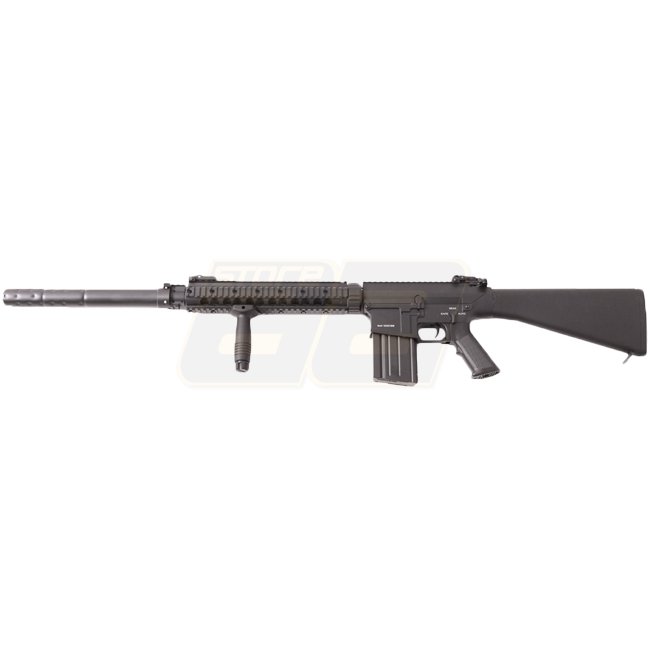A&K SR-25 Vollmetal AEG mit 450-Schuss-Magazin, einstellbarem Hop-Up und Schussmodus in Halbautomatik und Vollautomatik. Langmotortyp und metallische Konstruktion machen es langlebig und zuverlässig. Kommt mit Gearbox Version 2 und Mündungsenergie von 420