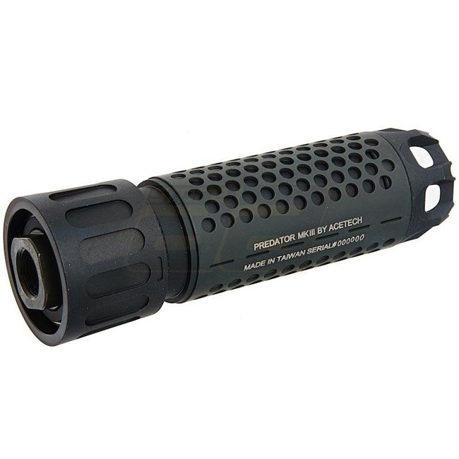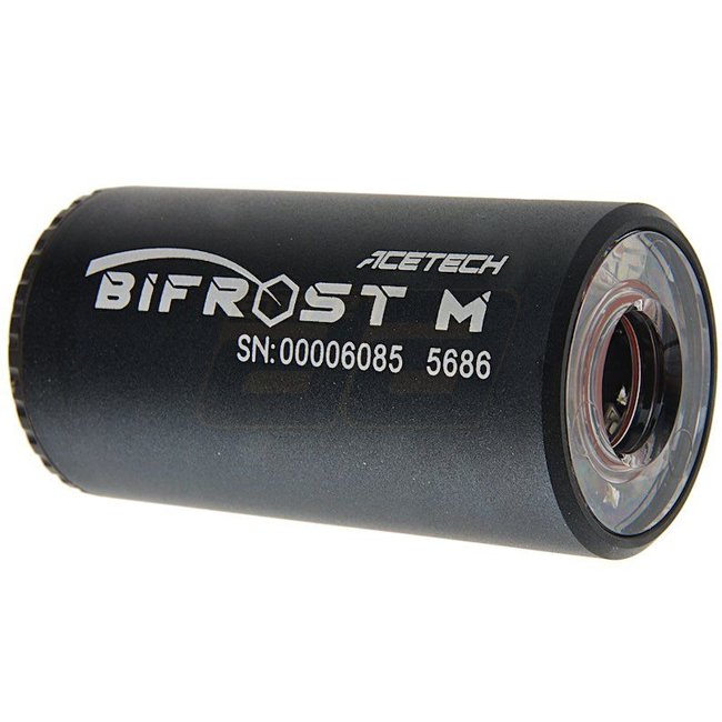 ACETech Predator Bifrost M Tracer Einheit MK III in Schwarz. Simuliert Mündungsausstoß und bietet 2 Modi: Tracer mit 11 Farboptionen und Scharfschützenmodus ohne Tracer. Kompatibel mit grünen BBs, 14mm CCW Gewinde, verfügt über einen integrierten wiederau