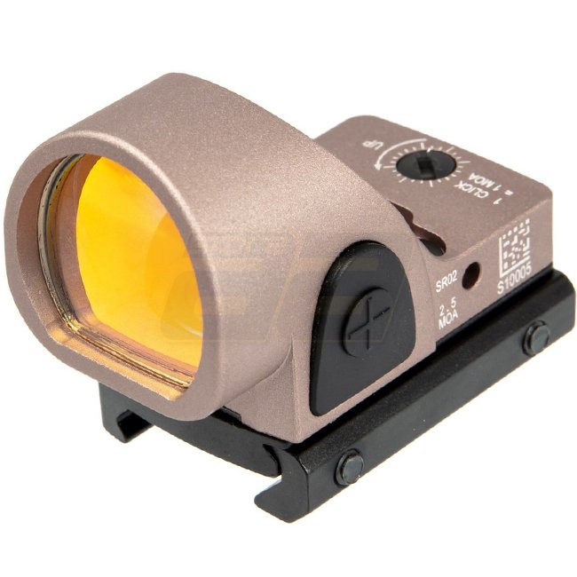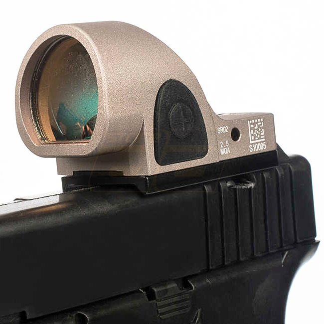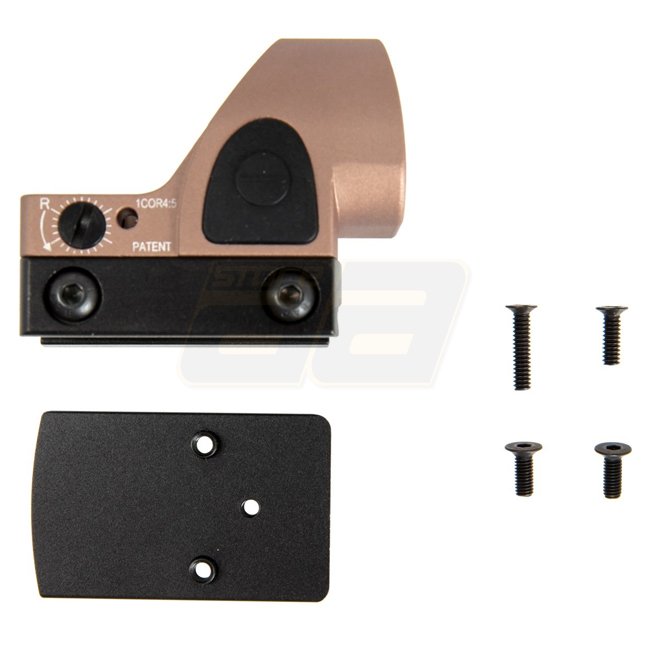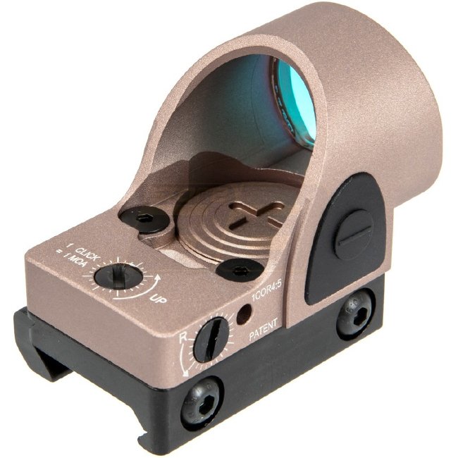 Aim-O SRO Rotpunktvisier in Dunkelbraun, mit 1x Vergrößerung, 30 mm Linsendurchmesser, roter Beleuchtung und einem Punktvisier, das in Wind- und Höhenrichtung verstellbar ist. Kompatibel mit G-Serie Pistolen, umfasst dieses Visier 1x CR2032 Batterie und w