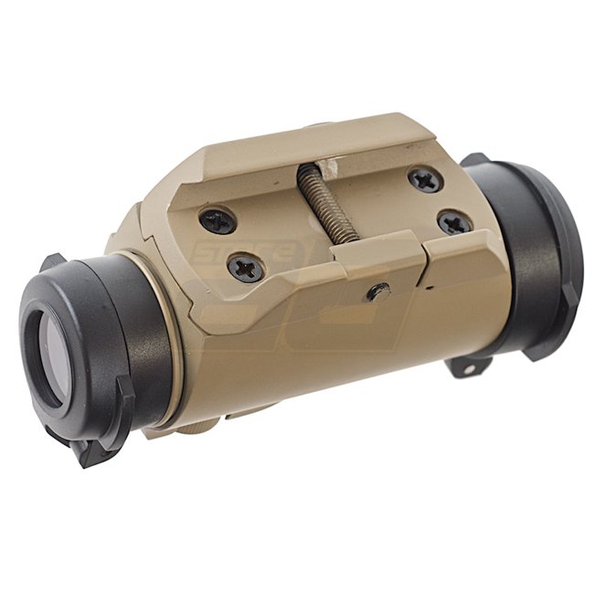 Aim-O T2 Rotpunktvisier mit niedriger Montage in Dunkelbraun. 1x Vergrößerung, 20mm Linse, rote Beleuchtung, Punktvisier. Seiten- und Höhenverstellung einstellbar. Benötigt 1x CR1632-Batterie (nicht enthalten). Kompatibel mit 20mm Picatinny-Montage. Länge