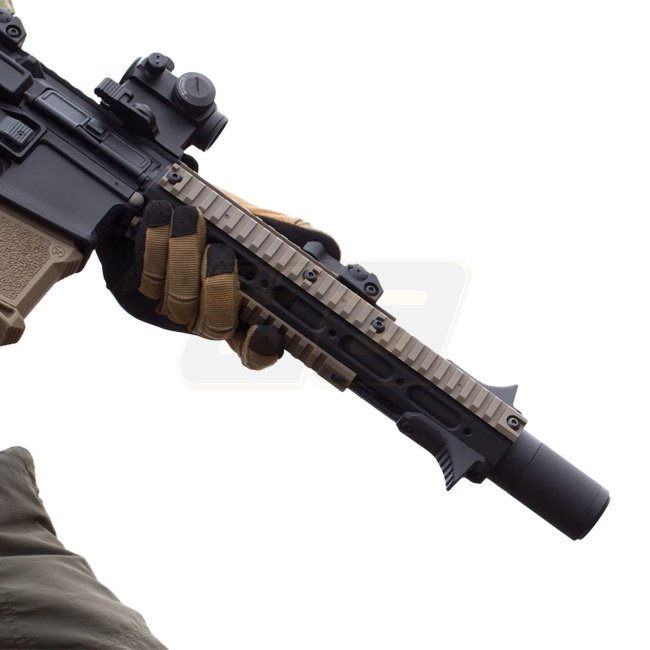Transformieren Sie Ihr AM013/14 mit dem Airtech Studios SEU Suppressor Extension Unit. Rüsten Sie auf ein 363 mm inneres Rohr für verbesserte Genauigkeit auf. Kombinieren Sie es mit dem Airtech BSU Barrel Stabilizer Unit für optimale Leistung.