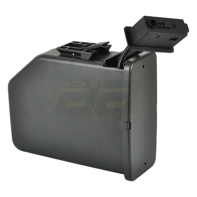 A&K M249 2500 Schuss Geräuschaktivierter elektrischer Box-Magazin - Oliv. 2x AA-Batterien erforderlich (nicht enthalten).