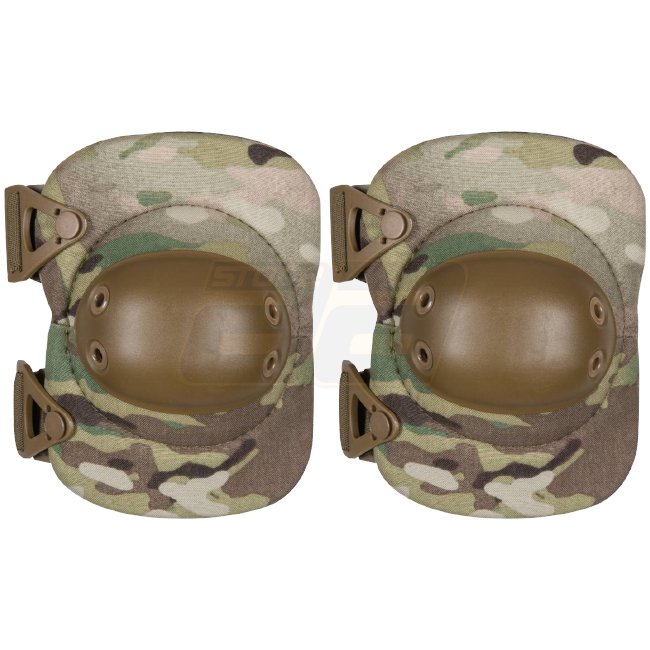 Professionelle in den USA hergestellte ALTA Flex Ellenbogenprotektoren in Multicam mit einer flexiblen Gummikappe für verbesserten Schutz.