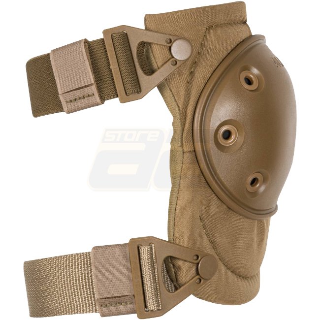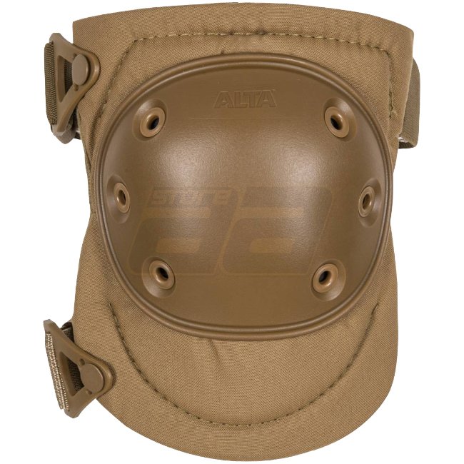 Professionelle Knieschützer der US-amerikanischen Firma ALTA Industries mit robustem, langlebigem Design für den taktischen Markt. Merkmale sind eine flexible runde Kunststoffkappe für besseren Halt, ein Cordura-Nylonbezug, ein doppelt gesichertes Gurtsys