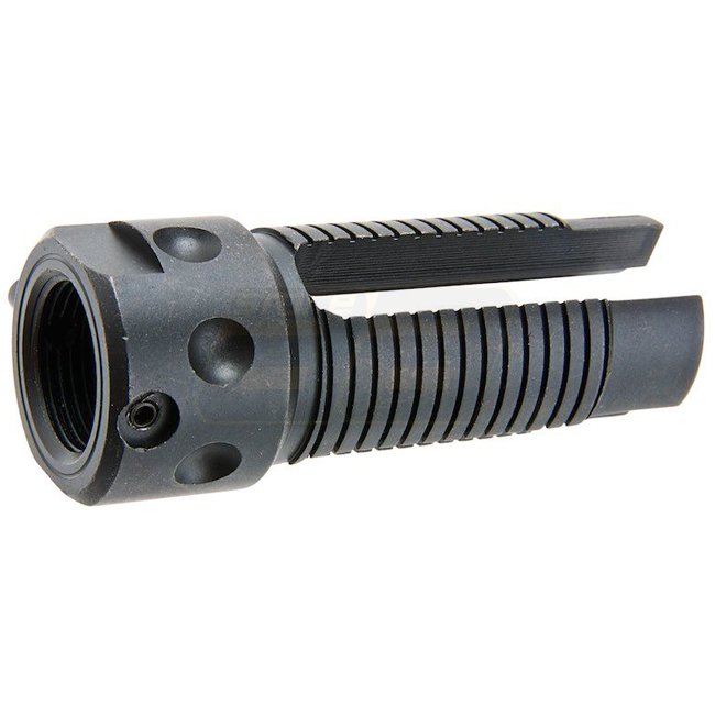 Verbessern Sie das Aussehen und die Leistung Ihres Airsoft-Gewehrs mit dem Angry Gun QDC 3-Prong Flash Hider. Dieser Stahl-Flash Hider ist kompatibel mit dem Angry Gun QDC/MCQ Dummy Suppressor, misst 55 mm in der Länge, wiegt 66 g und hat ein 14 mm CW-Gew