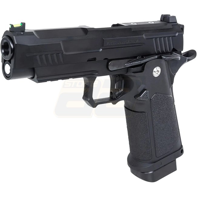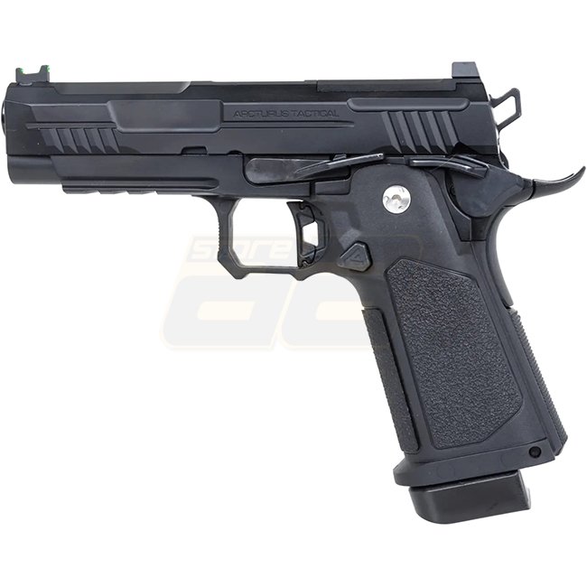 Die Arcturus Vanguard 4.3 ist eine Gas-Blowback-Pistole mit optikbereitem Schlitten (RMR-Footprint) für schnelle Zielerfassung und modulare Aufrüstung. Sie setzt auf robuste MIM-Stahlteile, eine beidseitige Magazinauslösung und eine griffige Nylonfaser-Griffschale für sichere Handhabung.