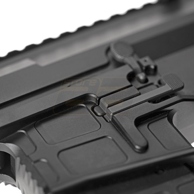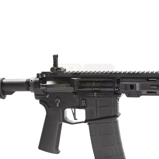 Ares M4 X-Class Modell 12 AEG - Schwarz: Vollmetall-Getriebe, MOSFET enthalten, Langmotor, 130-Schuss-Magazin-Kapazität.