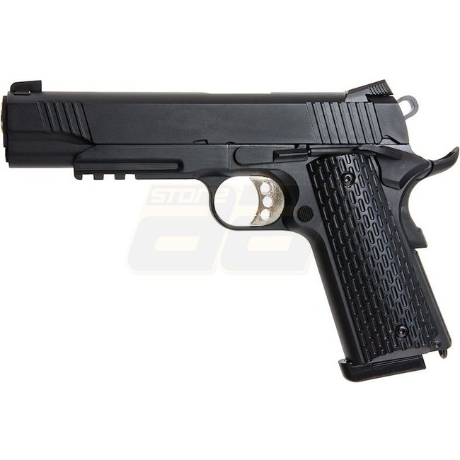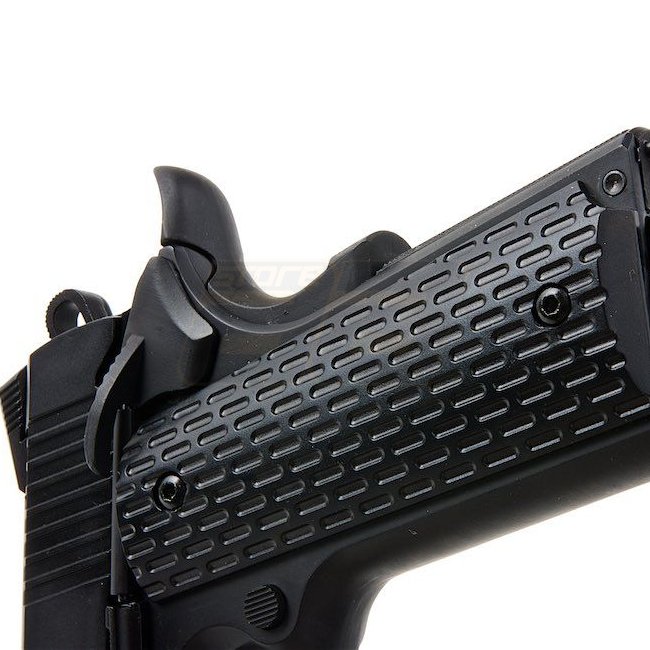 Army R28 Gas Blow Back Pistole - Schwarz: Realistische Gas-Blowback-Pistole mit Metalloberteil und -rahmen, Kunststoffgriff. Halbautomatischer Schießmodus, einstellbares Hop-Up, Geschossgeschwindigkeit von 300-320 FPS. Inklusive Magazin mit 27 Schuss. Län