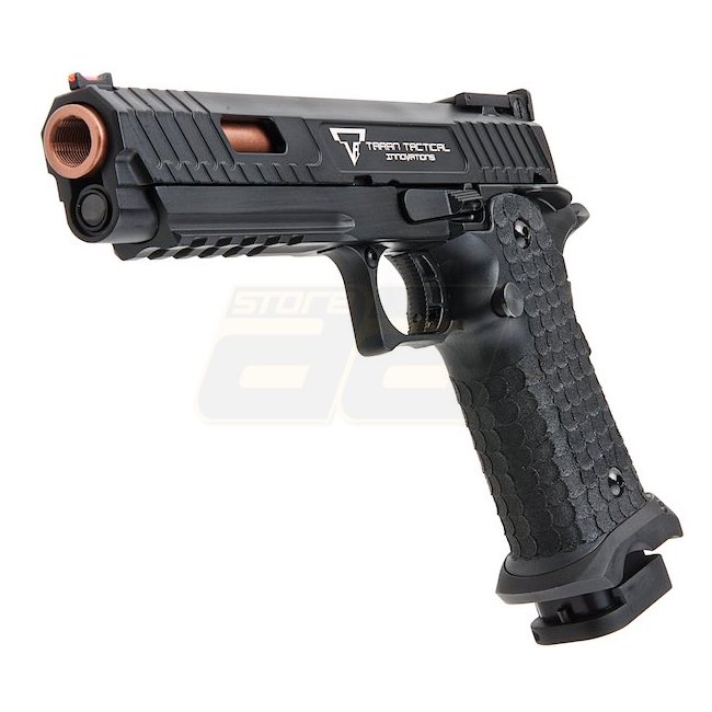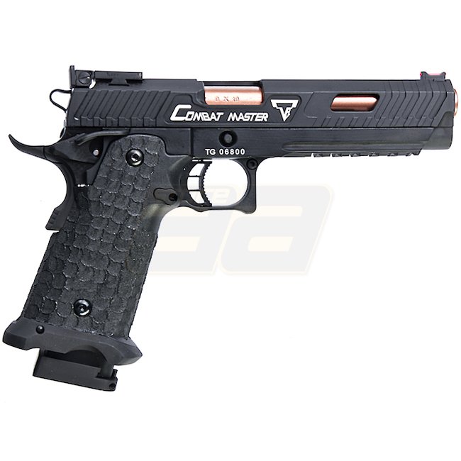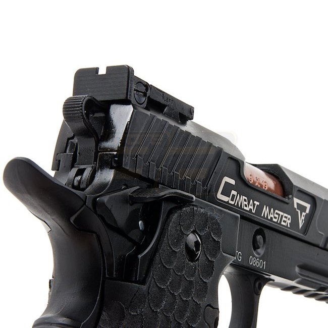 Die ikonische Army TTI JW3 2011 Combat Master Gas Blow Back Pistole, wie in John Wick 3 gesehen, ist eine Nachbildung der STI Combat Master 2011 Pistole. Ausgestattet mit einem Metall-Schlitten und -Rahmen, ergänzt durch einen Kunststoffgriff, hat diese P