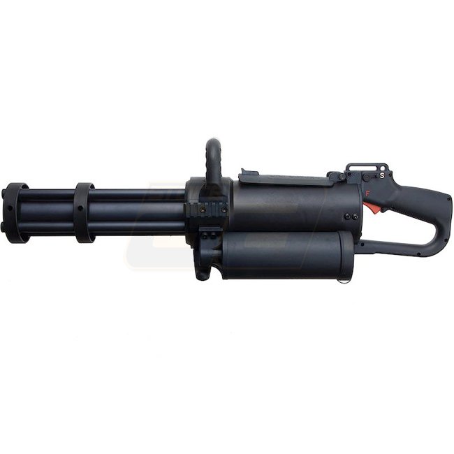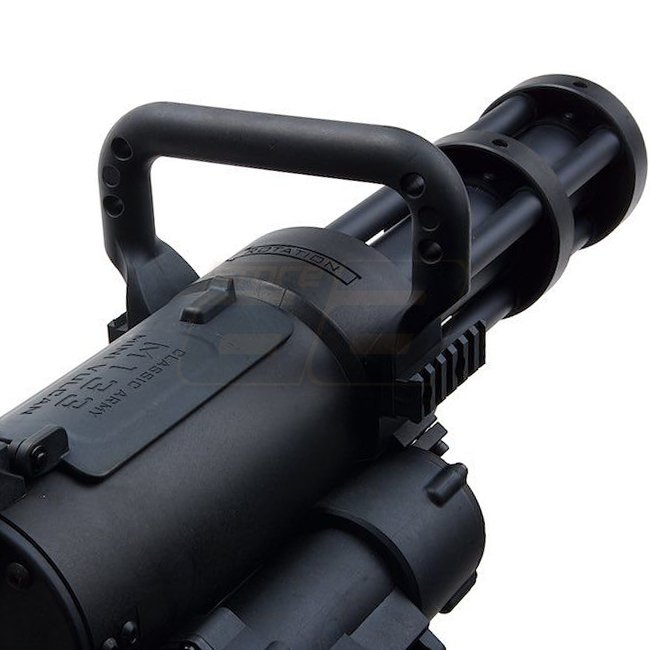 Klassische Armee M133 Mini Vulcan AEG - Zweigeschwindigkeitsbetrieb, einstellbares Hop Up, Metallaußengeschäfte, Nylonkörper, 2000 Kapazität, 655 mm Länge, 5700 g Gewicht, 340-360 FPS Mündungsenergie, Vollautomatikmodus.