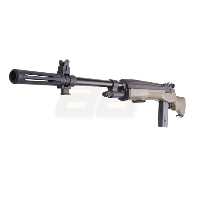Typ: AEG, Gearbox: V7, Material: Metall/ABS, Magazin Kapazität: 400, Länge: 1127mm, Gewicht: 3460g, Länge des inneren Laufs: 550mm, Mündungsgewinde: 14mm-/CCW, Mündungsenergie: 390-410 FPS, Schussmodus: Semi & Vollauto, Schussreichweite: 53,51-56,25m, Hop