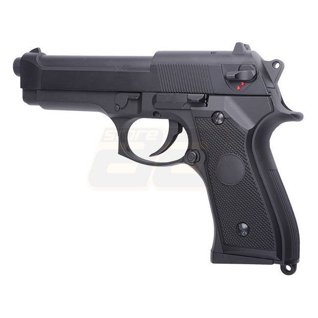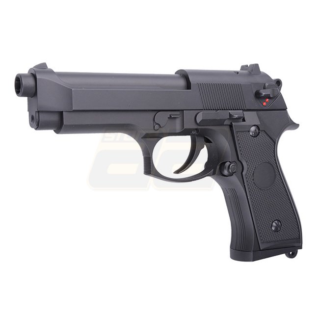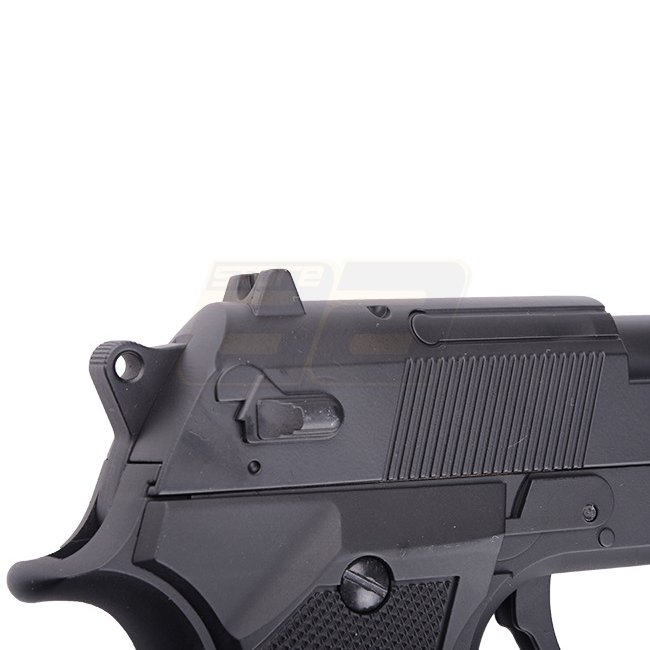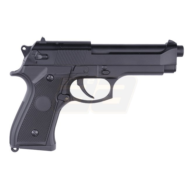 Die M9 von Cyma verfügt wie alle AEP Pistolen (Automatic Electric Pistol) über einen fixen Schlitten, welcher sich entsprechend beim Schiessen nicht bewegt. Dennoch wird nach jedem Schuss automatisch das nächste BB nachgeladen. Die Vorteile von AEP Pistolen bestehen generell darin, dass sie einerseits günstig im Unterhalt und andererseits auch leiser sind. Die Reichweite liegt jedoch klar unter derjenigen von Gas Pistolen. Bei diesem Modell ist der Schlitten zudem aus Metall gefertigt, womit die Pistole noch etwas schwerer in der Hand liegt.