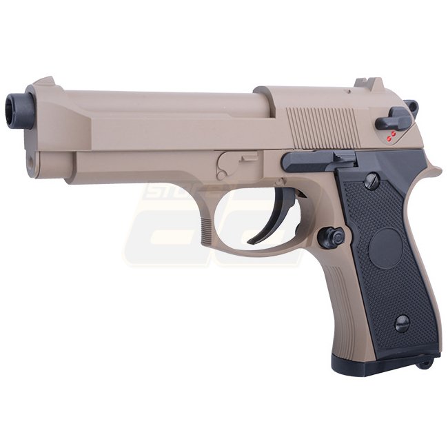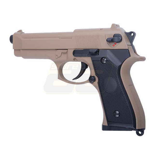Die M9 von Cyma verfügt wie alle AEP Pistolen (Automatic Electric Pistol) über einen fixen Schlitten, welcher sich entsprechend beim Schiessen nicht bewegt. Dennoch wird nach jedem Schuss automatisch das nächste BB nachgeladen. Die Vorteile von AEP Pistolen bestehen generell darin, dass sie einerseits günstig im Unterhalt und andererseits auch leiser sind. Die Reichweite liegt jedoch klar unter derjenigen von Gas Pistolen. Bei diesem Modell ist der Schlitten zudem aus Metall gefertigt, womit die Pistole noch etwas schwerer in der Hand liegt.