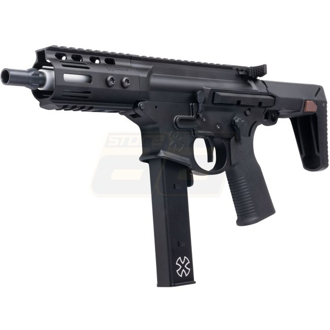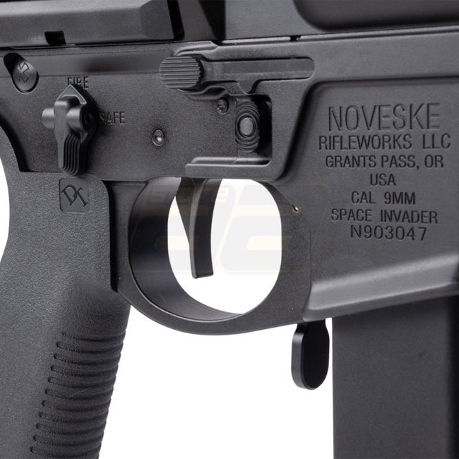 Die N9 basiert auf dem AR-9-Konzept, das speziell für Pistolenkaliber entwickelt wurde. Das Airsoft-Modell verwendet ein proprietäres GBB-System mit realistischem Rückstoss, funktionierendem Bolt Lock und präzise abgestimmtem Hop-Up. Das Gehäuse ist aus CNC-gefrästem Aluminium gefertigt und verfügt über ein minimalistisches M-Lok-Handschutzsystem für modulare Erweiterungen. Die kompakte Bauweise und die kurze Lauflänge machen die Waffe besonders führig in engen Räumen.