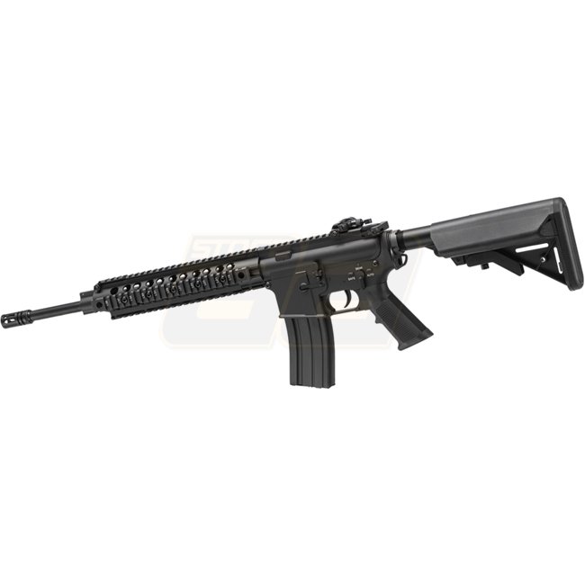 E&C EC-303 QR 1.0 EGV AEG - Schwarz: Hochwertiges Airsoft-Gewehr mit Metallgetriebe, langem Lauf und einstellbarem Hop-Up. Halbautomatische und vollautomatische Schussmodi, Mündungsgeschwindigkeit von 340-360 FPS und Magazin mit 300 Schuss Kapazität.