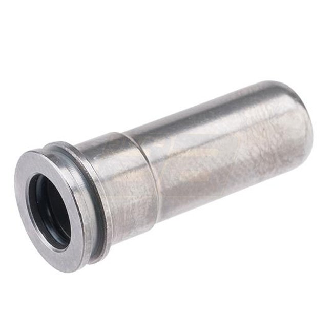 EpeS Düse AEG Duralumin NiPTFE 19,7mm: Hochwertige AEG-Düse aus strapazierfähigem Duralumin-Material mit NIPTFE-Beschichtung für optimalen Luftdichtheit und verbesserte Leistung von Airsoft-Gewehren.