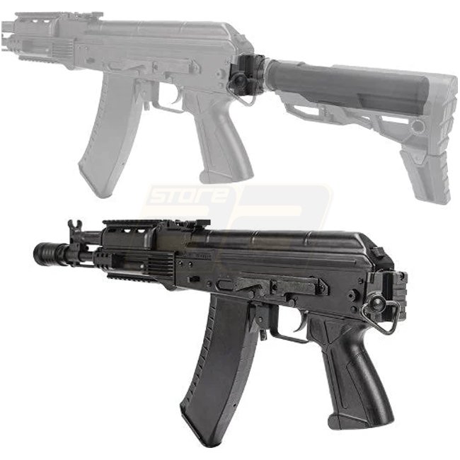 Verbessern Sie Ihr Marui AK74 NGRS mit dieser langlebigen Picatinny-Heckstockbasis in elegantem schwarzem Finish von First Factory. Rüsten Sie Ihr Gewehr für verbesserte Leistung und Stil auf.
