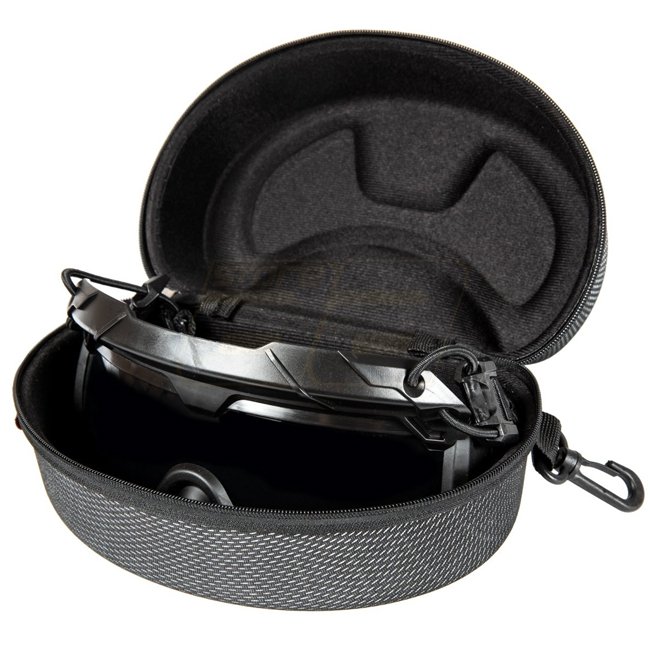 Low-Profile taktische Schutzbrille aus strapazierfähigem Kunststoff und Gummi. Die Verwendung einer Doppelscheibe und eines Gummikragens wirkt sich positiv auf die Luftzirkulation aus. Zusätzlich zum Standardband wird die Schutzbrille mit einem Satz Helmadapter geliefert.