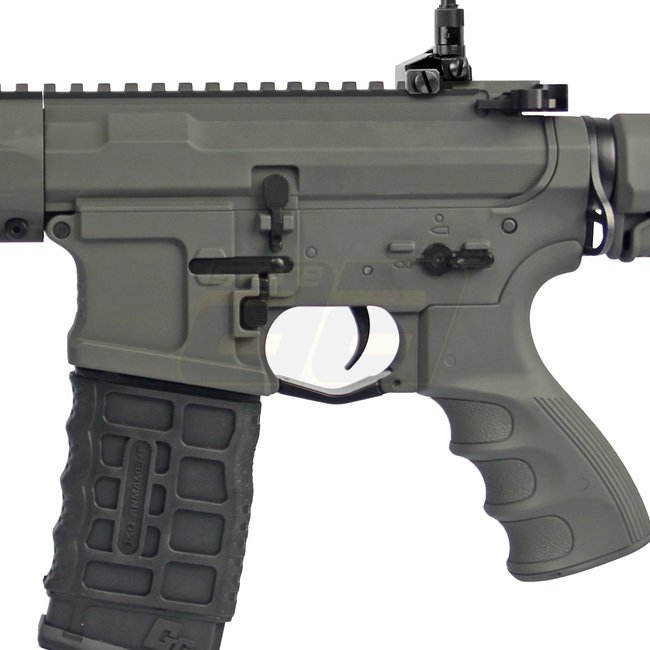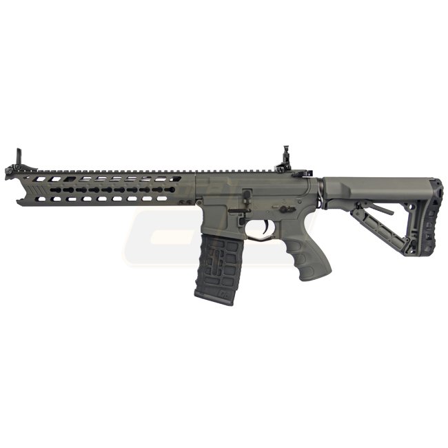 G&G GC16 Predator S-AEG - Grau, geeignet für den deutschen Markt, halbautomatisch, offizielle Genehmigung durch das Beschussamt, incl. F im Pentagon. Gearbox: Version 2, MOSFET. Motor: Langer Typ. Material: Metall. Magazinkapazität: 300 (6mm). Länge: 721-