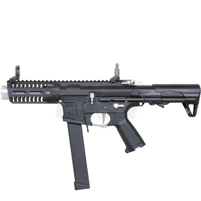 G&G ARP 9 0.5J AEG - Ice ist eine kompakte und leistungsstarke Airsoftwaffe mit einer Magazinkapazität von 300 Schuss. Sie verfügt über ein Version 2 Gearbox, MOSFET für verbesserte Leistung und einen langen Motor. Der Empfänger, der Schaft und der Pistol
