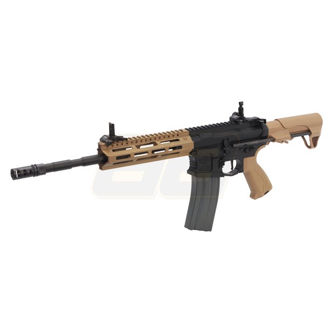 G&G CM16 Raider L 2.0E AEG - Wüste, Version 2 Gearbox mit ETU & MOSFET, ABS-Kunststoff / Metallmaterialien, 450 Schuss Magazin Kapazität, 750-830mm Länge, 2600g Gewicht, 357mm Innenlauf, 14mm- Mündungsgewinde, 350-370 FPS Mündungsvelocität, Halbbautomatik
