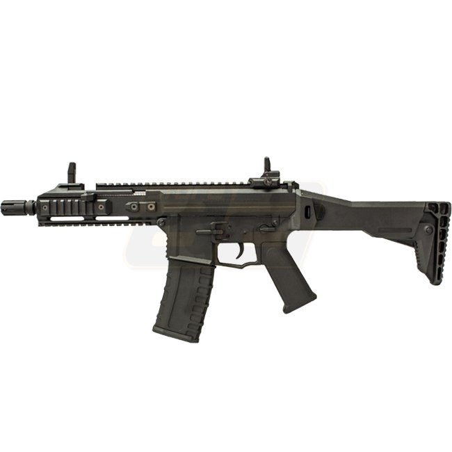 Kompakt, leicht und eine sehr gute Leistung. Die Waffe überrascht zudem mit einem sehr ergiebigen Magazin. Mit einer Gasfüllung konnten wir problemlos 3 Magazine (=90 BBs) verschiessen. Erst nach ca. 100 Schuss liess die Leistung bei Raumtemperatur nach. Einen Cool-Down Effekt konnten wir nicht feststellen, die G5 schoss vom ersten bis zum letzten Schuss wie man es erwarten würde und auch die Kadenz liess nicht zu wünschen übrig. Mitgeliefert werden Kimme und Korn sowie ein Adapter um einen M4 Schaft zu montieren. Das Magazin ist natürlich ebenfalls im Lieferumfang enthalten. Alle Schienen sind Standard 20mm/Picatinny womit jegliches Zubehör montiert werden kann.