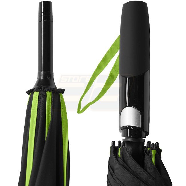 Der GLOCK Spazierstockschirm vereint Funktionalität mit Stil und verfügt über ein windfestes Design, verstärkt durch einen Fiberglasrahmen und lebendige Farbakzente. Ein integrierter Knopf am Soft-Touch-Griff ermöglicht ein müheloses Öffnen mit nur einem Klick.