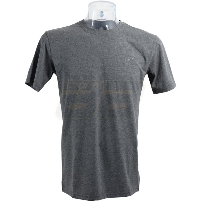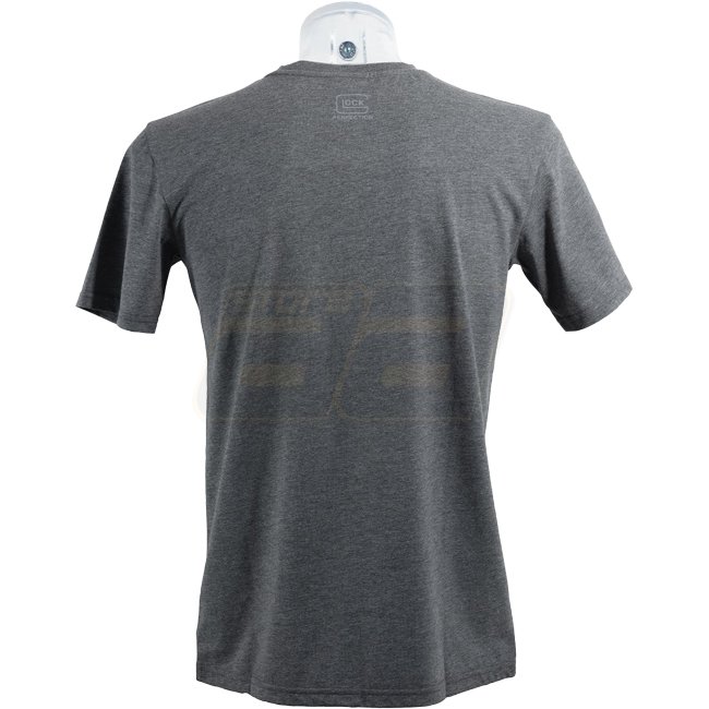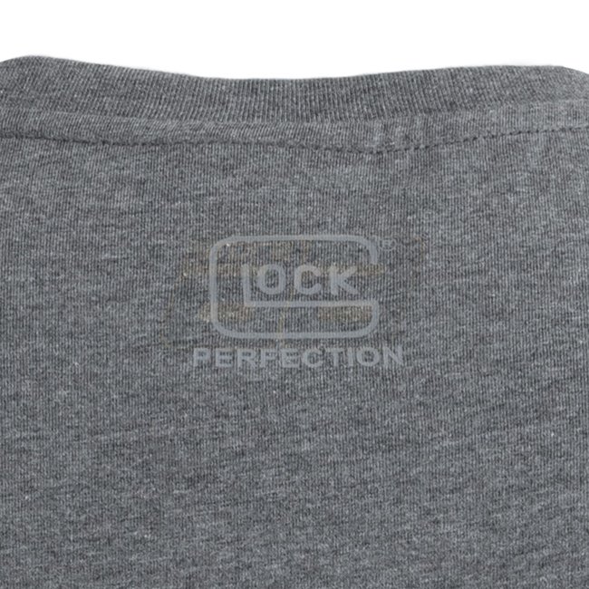 Glock Perfection Arbeitskleidung T-Shirt in Grau, Größe M. 60% Baumwolle & 40% Polyester Mischung. Mit Logostickerei auf der Brust und Logo-Druck auf dem Rücken. Waschbar bis 60°C.