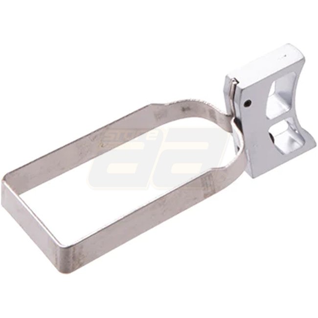 Upgraden Sie Ihre Marui Hi-Capa GBB mit diesem eleganten 2-Loch-Taktik-Abzug in Silber. Verbesserte Leistung und Stil in einem Paket.