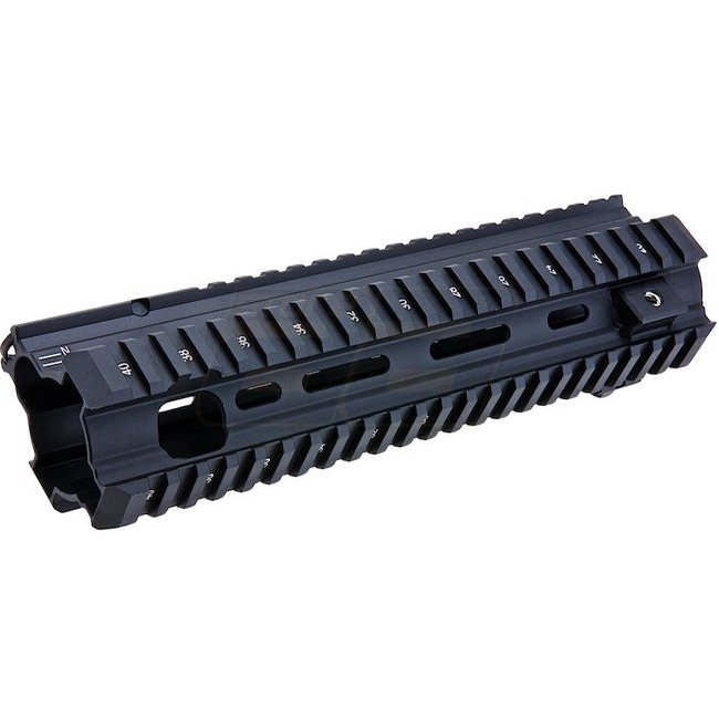 Elegante schwarze Handschutzschiene aus strapazierfähigem Aluminium, wiegend 370 g und mit einer Länge von 240 mm. Kompatibel mit Marui MWS und VFC M4 Gas Blow Back Gewehren.