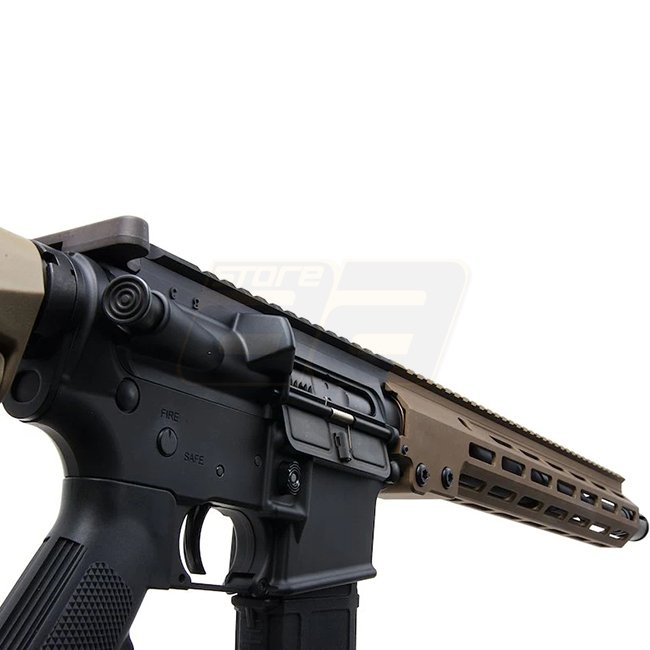 Metall / Polymer Pistolengriff, 30 Rundmagazinkapazität, 780-880 mm Länge, 2450 g Gewicht, 350 mm Innenlauf Länge, 14 mm- / CCW Mündungsgewinde, 330-350 FPS Mündungsenergie, Halbautomatischer & Vollautomatischer Schussmodus, 45.27-48.02 m Schussreichweite