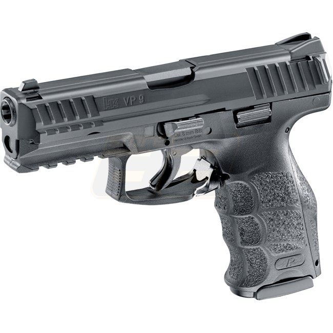 Hochwertige, präzise Heckler & Koch VP9 Federpistole im eleganten schwarzen Design. Robuste ABS-Kunststoff- und Metallkonstruktion. Magazin mit einer Kapazität von 11 Schuss (6mm). Kompakte Größe mit 185 mm Länge und einem Gewicht von 580 g. Mündungsenerg