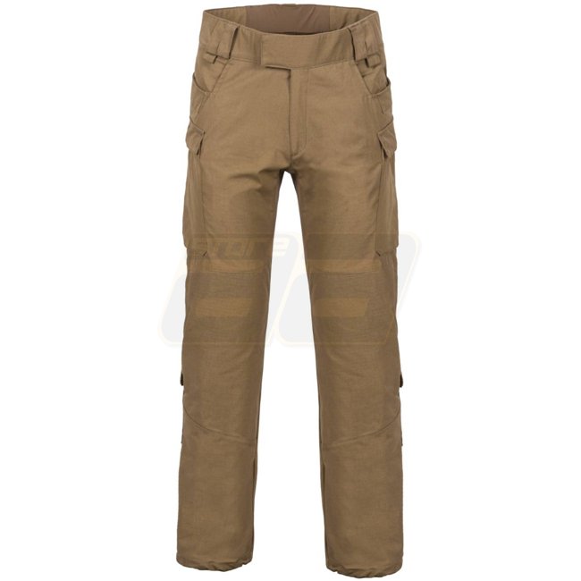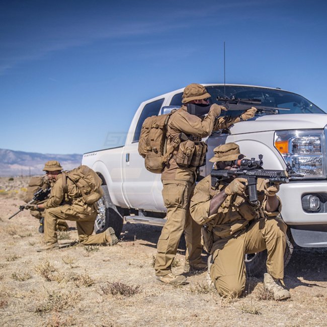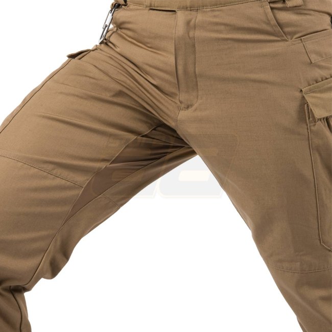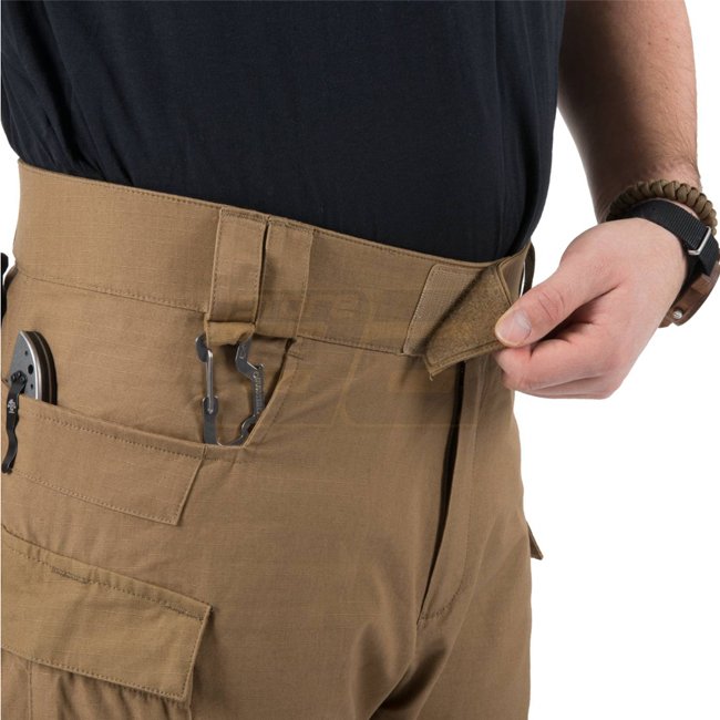 Die Hose hat einen lockeren, profilierten Schnitt. Der Gürtel ist mit Klettband befestigt, was eine zusätzliche Feineinstellung ermöglicht. Breite Gürtelschlaufen nehmen Gürtel mit einer Breite von bis zu 45mm auf, auch wenn Holster- oder Magazintaschen installiert sind. Für zusätzliche Bewegungsfreiheit finden sich Einschübe aus elastischem VersaStretch Material auf der Rückseite sowie im Schrittbereich. Klassische Fronttaschen mit Verstärkungen an den Kanten vermeiden eine Beschädigung durch Messerklammern. Zusätzliche Gesäßtaschen mit verstärkten Kanten passen fassen auch größere Gegenstände wie Magazine. An den Oberschenkeln befinden sich große, geräumige Cargotaschen mit Knöpfen. An den Unterschenkeln fassen kleinere geschlossene Taschen mit Klettverschluss wichtige Ausrüstung wie Feldverbände oder ein Tourniquet.