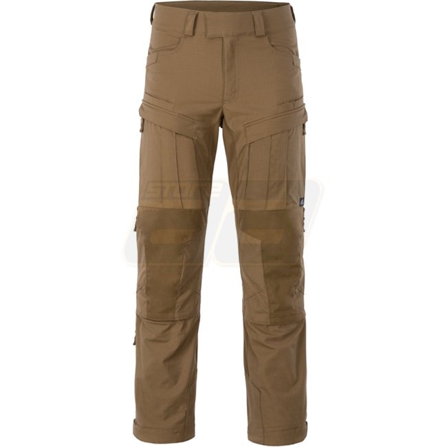 In wichtigen Bereichen (Taille, Schritt und Kniekehlen) wurden Einsätze aus Versastrech-Material verwendet. Es trocknet schnell und ist hoch atmungsaktiv. Der Kniebereich ist mit 500D Cordura-Gewebe mit Schlitzen für Schutzeinsätze verstärkt. Dank zusätzlicher Kordeln, die sich unter dem Knie und am unteren Beinende befinden, lässt sich die Hose leicht an das Bein anpassen.