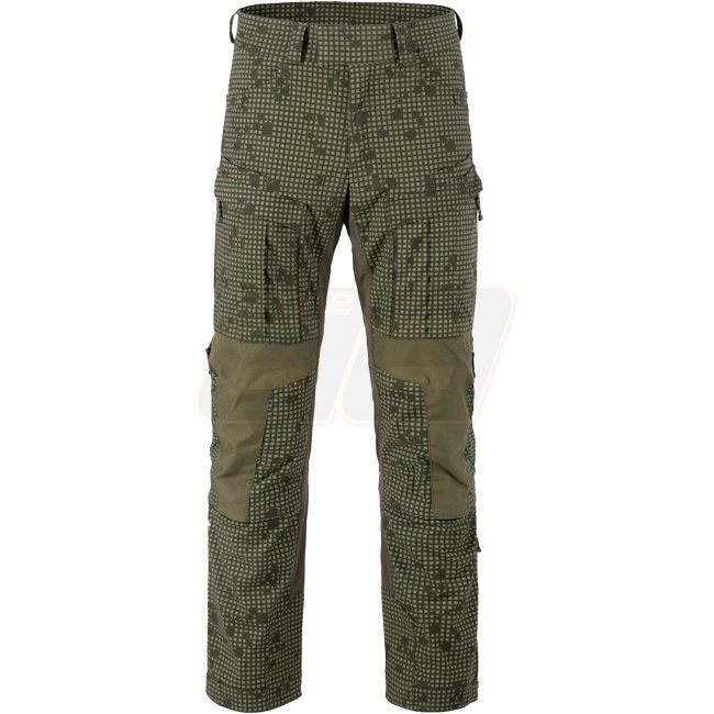 In wichtigen Bereichen (Taille, Schritt und Kniekehlen) wurden Einsätze aus Versastrech-Material verwendet. Es trocknet schnell und ist hoch atmungsaktiv. Der Kniebereich ist mit 500D Cordura-Gewebe mit Schlitzen für Schutzeinsätze verstärkt. Dank zusätzlicher Kordeln, die sich unter dem Knie und am unteren Beinende befinden, lässt sich die Hose leicht an das Bein anpassen.