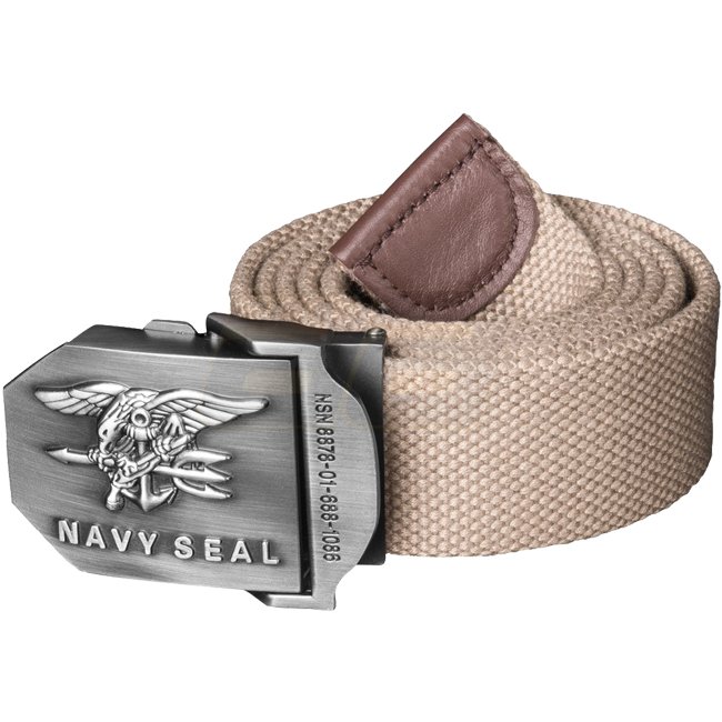 4cm Helikon-Tex Navy Seal's Polyester Gürtel in Khaki XL mit Metall-Druckschnalle mit U.S. Navy Seals Logo. Kann vom Benutzer gekürzt werden. Hergestellt aus Cordura-Polyester, Gewicht 216g.